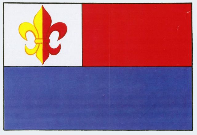 List tvoří bíle karé široké jednu polovinu šířky listu se žluto-červeně polcenou lilií a dva vodorovné pruhy, červený a modrý. Poměr šířky k délce listu je 2:3.