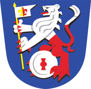 V modrém štítě stříbrno-červeně šikmo dělený lev s červenou zbrojí a jazykem držící v předních tlapách na zlaté žerdi stříbrný praporec s ocasem s žluto-červeně polcenou lilií a mezi zadními tlapami stříbrný mlýnský kámen s postavenou červenou kypřicí.