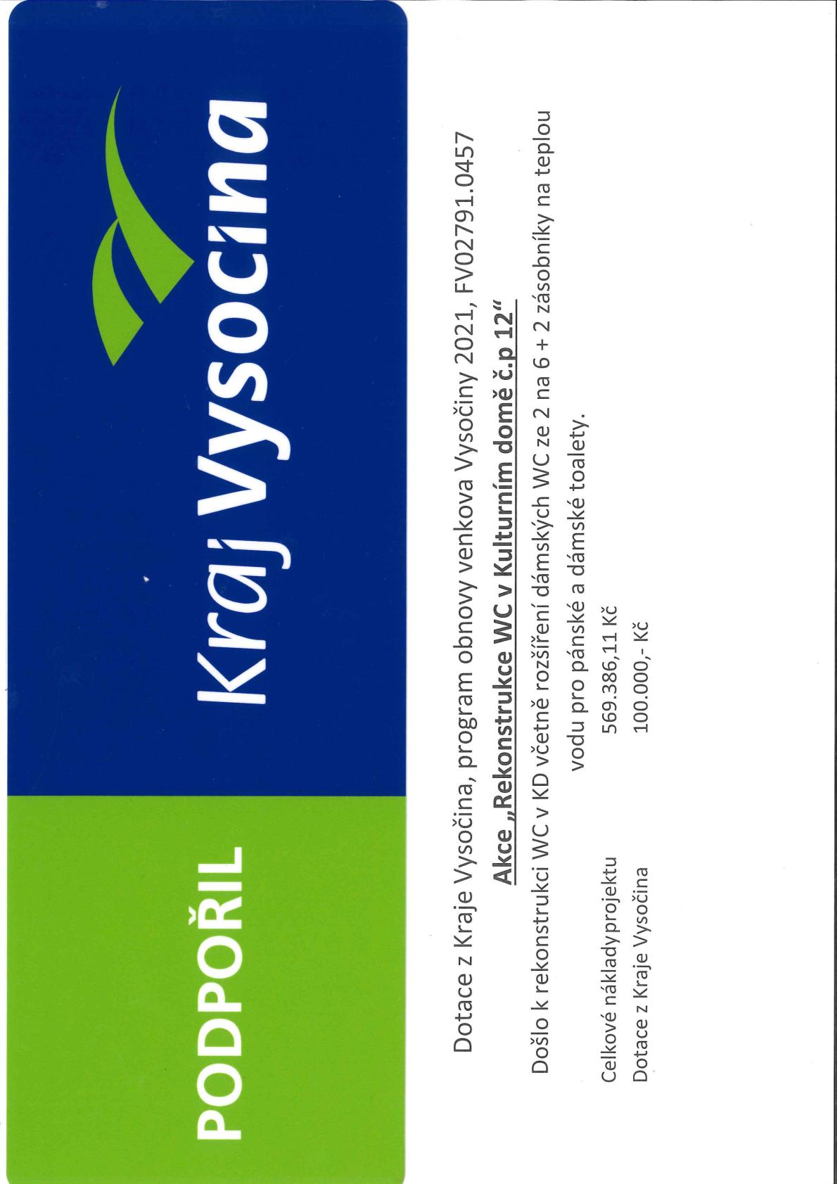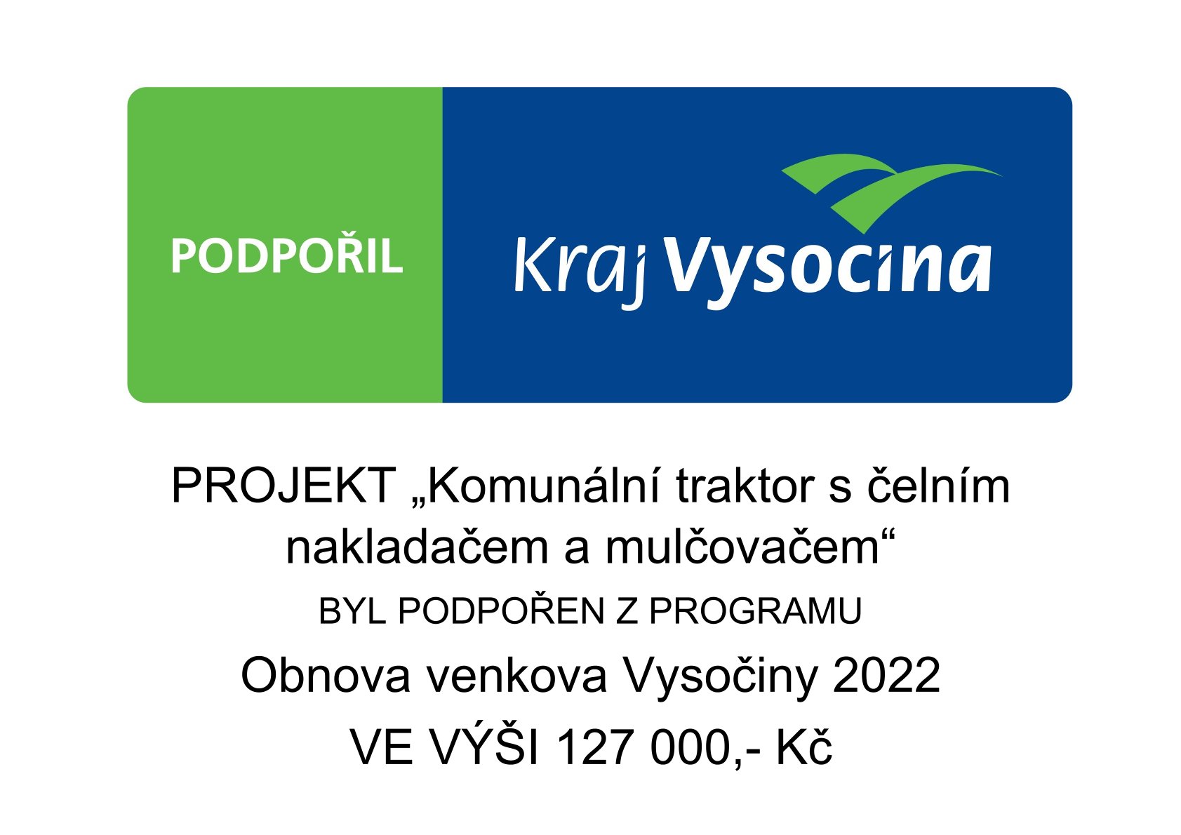 Publicita projektu z POV 2022 - Komunální traktor s čelním nakladačem a mulčovačem Výdaje projektu: 1 462 890,- Kč Dotace z POV: 127 000,- Kč