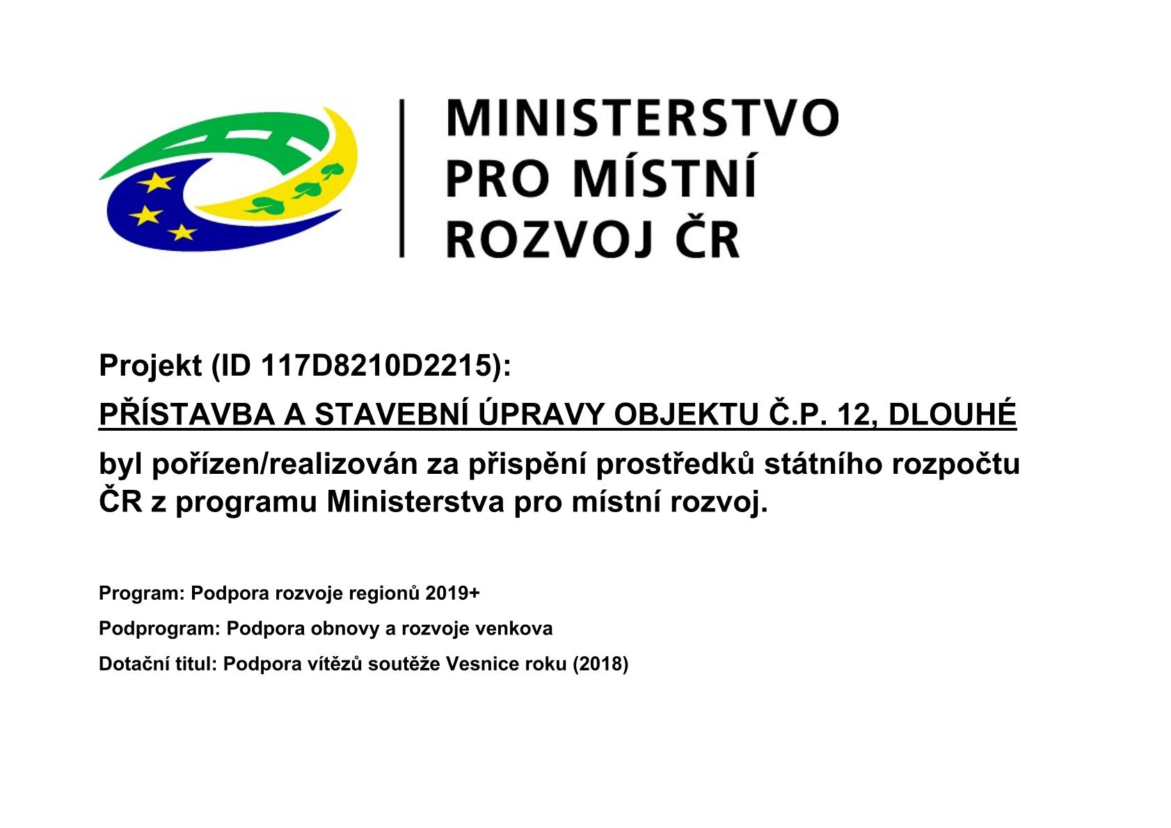 Publicita projektu z MMR-Přístavba a stavební úpravy objektu č.p. 12, Dlouhé
